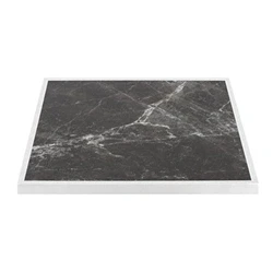 Bolero Dark Granite Effect Tempered Glass Square Outdoor Table Top with White Trim 700 mm, Size: 38(H) x700(W) x700(L) Tabletop Suitable for Indoor & Use, FU516