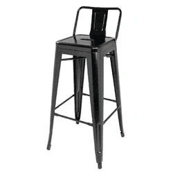 Bolero DL882 Steel Bistro High Stool with Back Rest, Black (Pack of 4)