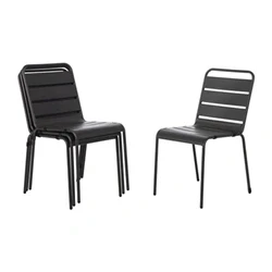 Bolero Slatted Steel Side Chairs Set (Pack of 4), Grey, Seat Height: 450 mm, Rust Resistant Indoor Outdoor Chairs, Patio Industrial Style Dining CS727