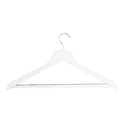 231(W)mm. Betula Wood. White. Includes trouser bar with non-slip rubber strip. Swivel hook for easy positioning. Can be used with a wide range of clothing types. Notches on arm are ideal for hanging skirts/dresses.
