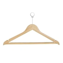 215(W)mm. Betula Wood. Brown. Security anti-theft design, supplied with ring to attach hanger to rail. Hanger can be removed from wardrobe but ring will remain fixed to rail. Can be used with a wide range of clothing types.