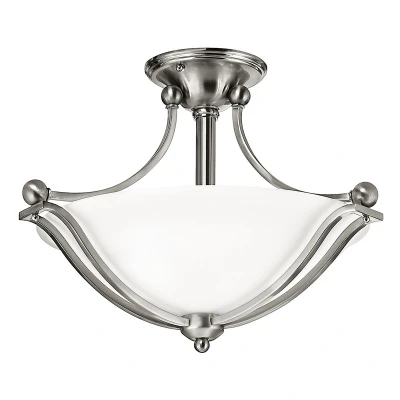 Bolla 2 Light Semi Flush Ceiling Brushed Nickel, E27