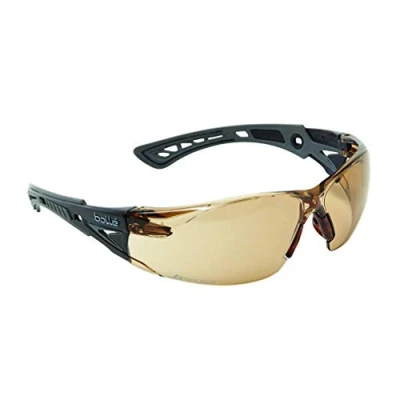 General description The Bollé RUSH Safety Glasses are lightweight protective eyewear designed for outdoor use, offering high protection against sunlight and glare. They feature a modern design that ensures comfort for extended wear, with upper protection from the frame. The glasses are equipped with smoke-colored polycarbonate lenses that effectively filter 99.99% of UVA and UVB rays, providing excellent optical quality. Technical specifications Weight: 25g Frame: Rimless, made of PC/PVC for lightness and durability Lenses: Polycarbonate, smoke tint, 13% light transmission Protection: Filters 99.99% of UVA and UVB rays Coatings: Anti-fog (PLATINUM), anti-scratch Standards: EN166, EN170, ballistic resistance Low energy impact resistant: 45m/s Compatibility and accessories Includes an adjustable strap for a secure fit Installation Adjust the strap to fit comfortably around your head Ensure the lenses cover your eyes fully for optimal protection Usage Ideal for outdoor activities,
