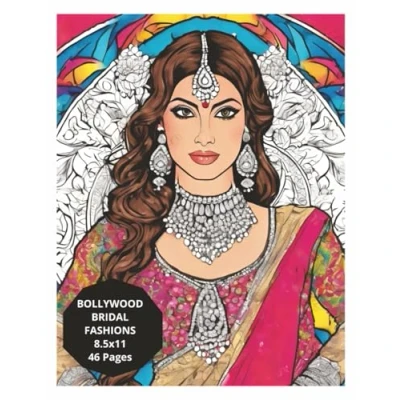 Bollywood Bridal Fashion Coloring Book for Adults, Indian Wedding Outfits, Desi Bride Lehengas: South Asian Looks, 8.5x11 Stress Relief Art Lovers, 46 Pages to Color