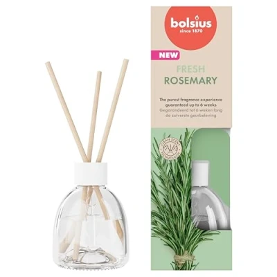 Enjoy a long-lasting fragrance experience with the bolsius rosemary reed diffuser and discover the crisp, green scent of freshly picked rosemary, this reed diffuser guarantees the purest fragrance release up to 6 weeks, thanks to our cleanscent technology, this technology is a unique combination of a plant-based formula used in our smartly designed bottle with excellently positioned natural rattan sticks, contains natural extracts, our collection includes various products with trendy fragrances and modern classics you can enjoy within the comfort of your own home Experience the feeling of outdoor life in summer with rosemary, this fragrance captures the crisp, green scent of freshly picked rosemary, evoking memories of sun-soaked days in your herb garden, with its refreshing notes, it provides an instant boost of energy, use it throughout your home to create a clean, revitalizing atmosphere The collection combines iconic scents with natural extracts in an optimised vegan formula, the smart design of the bottle ensures the excellent positioning of the three reed diffusers, so the subtle scent gradually spreads through the room; up to 6 weeks, in addition, the reeds make it easy to adjust the fragrance intensity to your preference Choose your favourite fragrance from bolsius's collection, it combines iconic fragrances with natural extracts, made with love for people and planet, experience the pure fragrance experience of these trendy fragrances and modern classics within the comfort of your own home! crafted using cleanscent technology we guarantee the purest fragrance experience and the cleanest fragrance release Since 1870, bolsius has been making quality products to create cosiness and a warm ambience in your home, we do this with passion, skilled craftsmanship and a love for people and planet, bolsius inspires, connects and warms people with the magic of candlelight and fragrances that tickle the senses, it's how you can make every moment a special one, for yourself and for everyone around you
