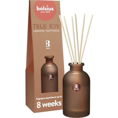 Take some time out for yourself with our Bolsius True Joy Oriental Softness reed diffuser and discover the lush, calming fragrance of an oriental garden in full bloom; this reed diffuser guarantees the purest fragrance release up to 8 weeks, thanks to our ScentFusion technology Oriental Softness is an enticing, earthy fragrance with a subtle blend of moss, sultry wood tones and a hint of orange and powdery amber; discover the lush, calming fragrance of an oriental garden in full bloom Inspired by fragrances from nature and made with natural extracts; the rich fragrance gradually spreads through the room and lingers for a long time; for up to 8 weeks Immerse yourself in the rich scents of True Joy, capturing the beauty of nature through vibrant colors, captivating shapes, and alluring fragrances; treat yourself to a distinctive blend of our fragrances, elegantly presented in a giftable design; crafted with ScentFusion technology, we guarantee the purest fragrance experience and the cleanest fragrance release Since 1870, Bolsius has been making quality products to create cosiness and a warm ambience in your home; we do this with passion, skilled craftsmanship and a love for people and planet; bolsius inspires, connects and warms people with the magic of candlelight and fragrances that tickle the senses