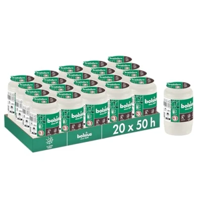Bolsius Grave Light White 20 Pack Long Burning Time 3 Days Funeral Candle & Memorial Candles Clean Without Palm Oil