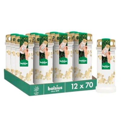 Bolsius Grave Light White with Motif Pack of 12 Heart Long Burning Time 70 Hours Funeral Candle & Memorial Candles Clean Without Palm Oil Stormlid
