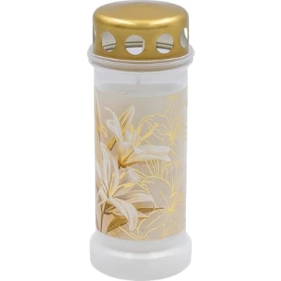 Bolsius Grave Light White with Motif Pack of 12 Lily Length Burning Time 70 Hours Funeral Candle & Memorial Candles Clean Without Palm Oil