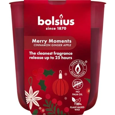 Create a warm and cosy atmosphere with bolsius merry moments scented candle and fill your home with the comforting essence of cinnamon, ginger and baked apple, this candle has the cleanest fragrance release up to 24 hours, thanks to our cleanscent technology, this technology is a unique combination of the purest wax and a specially developed cotton wick that optimally evaporates the scent to ensure the cleanest fragrance release, this product is made without palm oil and with plant-based wax, the merry moments collection includes candles in various sizes, reed diffusers and tealights Radiant fruity apple and orange topnotes lead to the heart of home bakeries, red apples, ginger and cinnamon sticks, with rich vanilla and warm woody notes in the background, popping up nostalgic memories of christmas with family at home The natural extracts infused within the bolsius true glow scented candle emit a cosy and aromatic fragrance of warm spices, made more sustainable thanks to the use of natural vegan wax, this product is palm oil and animal fat free, the specific method used to braid the cotton wick creates a stable flame without smoke, the fragrances from bolsius scented candles last for an impressively long time The true glow collection is inspired by the colours and textures of the winter season, true glow combines classic, dark, woody fragrances with a bit of warm amber, the excellent fragrance for winter days which you can use to create a nice and welcoming, homely feeling Since 1870, bolsius has been making quality products to create cosiness and a warm ambience in your home, we do this with passion, skilled craftsmanship and a love for people and planet, bolsius inspires, connects and warms people with the magic of candlelight and fragrances that tickle the senses, it's how you can make every moment a special one, for yourself and for everyone around you