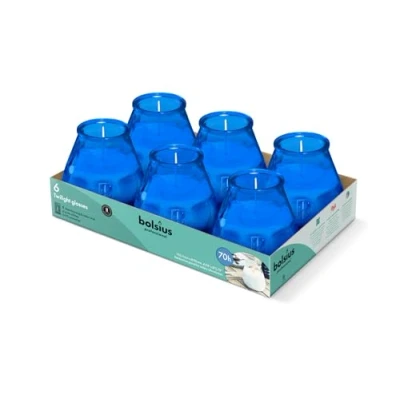 Bolsius Outdoor Candles 6 Pieces in Glass Blue Burning Time 70 Hours No Palm Oil Clean Cotton Wick Non Scented