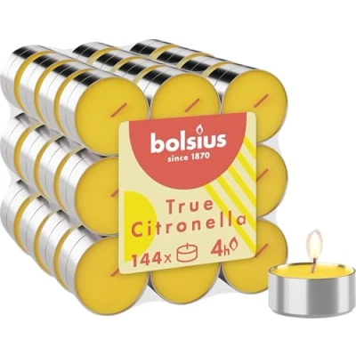 Bolsius Outdoor Tealight Fragranced Citronella Yellow Pack of 144 Long Burning Time 4 Hours Candle Exterior Decoration Natural Extracts Vegan Wax No Palm Oil