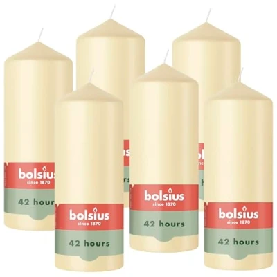 Bolsius Pillar Candle Beige 15cm 6 Pieces Burning time 42 Hours Natural Vegetable Wax Palm Oil Free.