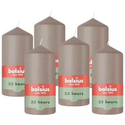 Discover the Essentials collection, the smooth pillar candles from Bolsius! This light taupe candle is 12 cm high and thanks to our MaxAmbiance technology, dripping and soot free for up to 33 hours; this technology combines a unique formula with a specially selected wick for perfect burning performance; made from vegetable wax and without palm oil Versatile, basic and natural; taupe is the elegant base shade that fits perfectly with any other colour in your decor High quality candles are characterised by their long burn time and shape retention; bolsius Essential pillar candles have a smooth finish and will not smoke or drip; Our Max Ambiance technology combines a unique wax recipe with a super flat wick for perfect burning performance; Made with vegetable wax and palm oil free Bolsius 'Essentials' candles with a smooth surface are essential in any interior; different sizes and shades can be combined to suit your personal preferences; elegant and subtle! Crafted with our MaxAmbiance technology that combines a unique wax blend with a specially selected wick for perfect burning performance Since 1870, bolsius has been producing high-quality candles and fragrances with which you create an atmosphere of cosiness and well-being in your home; we do this with passion, know-how and with respect for people and planet; bolsius inspires, connects and warms people with the magic of candlelight and fragrances that stimulate your senses; so that every moment becomes something special; for you, and for everyone around around around