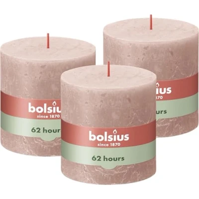 Bolsius Rustic Pillar Candle XXL Soft Pink Pack of 3 Long Burning Time 62 Hours Household Interior Decoration Unscented Includes Natural Vegan Wax No Palm Oil 10 x cm