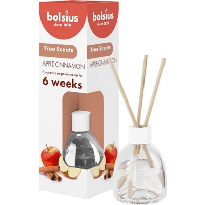 Combine iconic fragrances with natural extracts in an optimized and vegan formula; the clever design of the bottle ensures perfect positioning of the three fragrance sticks, allowing the subtle scent to gradually diffuse throughout the room for up to 6 weeks; additionally, the fragrance intensity can easily be adjusted according to your preferences using the sticks A warm and recognizable scent that reminds you of a delicious homemade apple pie, just out of the oven; with this comforting blend of apple and cinnamon, you'll instantly create a cozy and warm atmosphere in your home Choose your favorite fragrance from the Bolsius collection combines iconic scents with natural extracts; made with love for people and the planet; experience the pure essence of these trendy and modern classic fragrances in the comfort of your home; crafted with CleanScent technology, we guarantee the purest fragrance experience and the cleanest scent release Since 1870, Bolsius has been creating quality products that bring comfort and ambiance; we do this with passion, craftsmanship, and love for people and the planet; bolsius inspires, connects, and warms people with the magic of candlelight and fragrances that awaken your senses; this is how you make every moment a special one, for yourself and everyone around you
