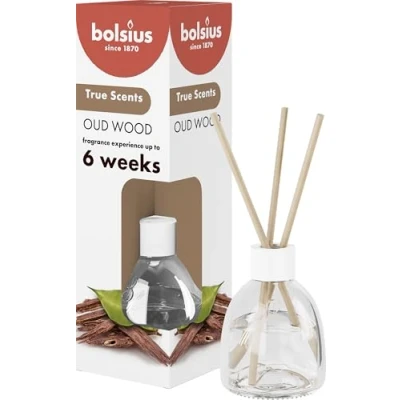True Scents combines iconic fragrances with natural extracts in an optimized vegan formula. The clever bottle design ensures perfect placement of the three perfume sticks, so that the subtle scent can gradually spread throughout the room - up to 6 weeks. In addition, with the sticks you can easily adjust the intensity of the perfume according to your preference. The new Oud Wood fragrance is luxurious and masculine. The dark and warm Oud Wood exudes a smoky, wood-like scent that promises a sensual fragrance. Bolsius scented products are a tribute to nature! True Scents blends iconic aromas with natural extracts. The subtle fragrance gradually spreads throughout the room, where it lasts up to six weeks. Treat yourself to a pure scent in your cosy home. Since 1870 Bolsius has been producing high-quality candles and fragrances to create an atmosphere of comfort and well-being in your home. We do this with passion, competence and respect for man and the planet. Bolsius inspires, connects and warms people with the magic of candlelight and scents that excite your senses. Make every moment special. For you, and everyone around you.