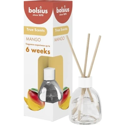 Enjoy a long-lasting fragrance experience with the Mango-scented reed diffusers; the smart design of the bottle ensures the optimal placement of the three reed diffusers; thanks to the combination with the optimised vegan formula, these reed diffusers spread their delicious scent for up to 6 weeks A unique, exotic fragrance of juicy mango that reminds you of a marvellous tropical vacation; nice and fruity, fresh and sweet Iconic scents with natural extracts in an optimised vegan formula; the smart design of the bottle ensures the optimal positioning of the three reed diffusers, so the subtle scent gradually spreads through the room; up to 6 weeks; in addition, the reeds make it easy to adjust the fragrance intensity to your preference Choose your favourite fragrance from Bolsius's collection; iconic fragrances with natural extracts; made with love for people and planet; experience the pure fragrance experience of these trendy fragrances and modern classics within the comfort of your own home; crafted using CleanScent technology we guarantee the purest fragrance experience and the cleanest fragrance release Since 1870, Bolsius has been making quality products to create cosiness and a warm ambience in your home; we do this with passion, skilled craftsmanship and a love for people and planet; bolsius inspires, connects and warms people with the magic of candlelight and fragrances that tickle the senses