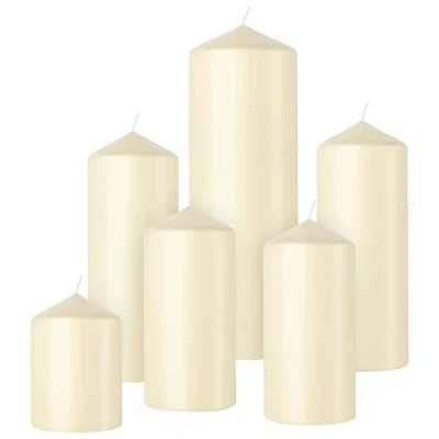 Bolsius Smooth Pillar Candles Set of 6 Soft Pearl Decorative Household Long Burn Time Unscented Natural Plant Based Wax Palm Oil Free