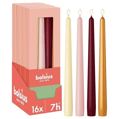 Bolsius Smooth Tapered Candles Set of 16 Haptic Luxury Decorative Household Long Burn Time Unscented Natural Plant Based Wax Palm Oil Free