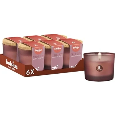 Bolsius True Joy Scented Candle with Cork Lid Burgundy Floral Blessings Burn time: 21 Hours Natural Extracts Vegetable Wax