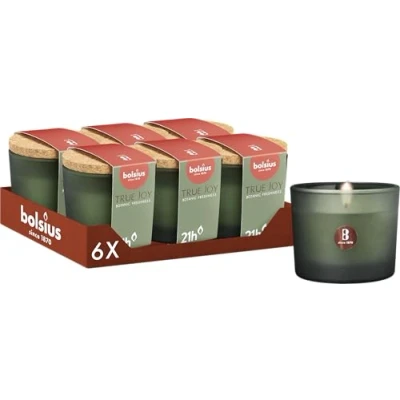 Bolsius True Joy Scented Candle with Cork Lid Green Botanic Freshness Burn time: 21 Hours Natural extracts Vegetable Wax Palm Oil Free