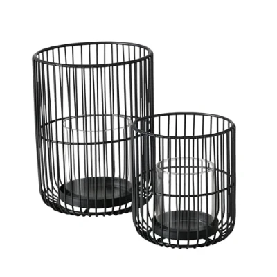 Boltze Cindy 2033181 Lantern Set of 2 Black Iron Glass 14 20 cm High Modern Design Garden Decoration Table Candle Accessories Tea Light