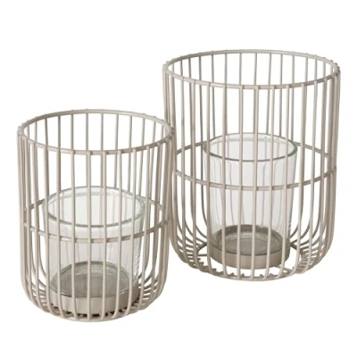 2 piece set in graduated sizes for natural light accents Harmonious colours in beige and transparent with matte surface HIGH QUALITY MATERIAL - Glass combined with sturdy iron Simple & stylish - ideal for the natural home style Atmospheric light source for living room, shelf or windowsill