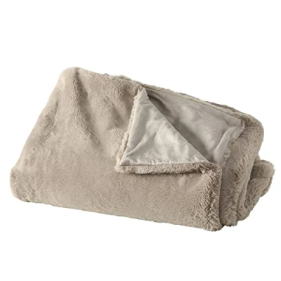 BOLTZE Storan 1015378 Blanket 150 x 200 cm Beige Polyester Cuddly Ideal for Cold Winter Evenings Fur Look