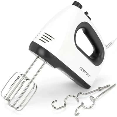Bomann HM 6054 CB Hand Mixer/Hand Mixer with 5 Speed Levels, Turbo Level and Eject Button, Stainless Steel Wire Dough Hook Included, White/Grey