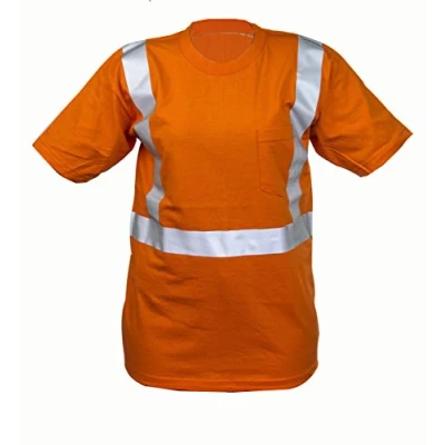 Hi Vis Short Sleeve Safety Work Crew Neck T Shirt Orange Large
