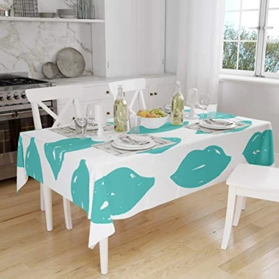 Bonamaison Kitchen Decoration, Tablecloth, Turquoise, White, 140 x 160 Cm Designed and Manufactured in Turkey
