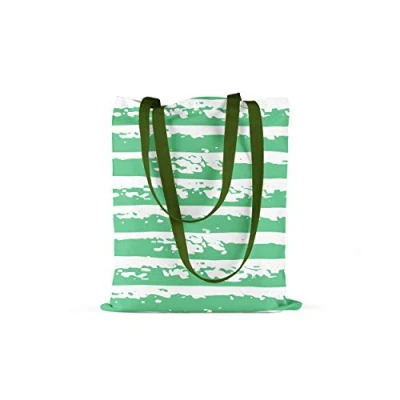 Bonamaison Printed Tote Bag, Reusable Grocery Shopping Machine Washable, Foldable, Canvas Cloth Bag with Green Handles, Size: 34x40 Cm