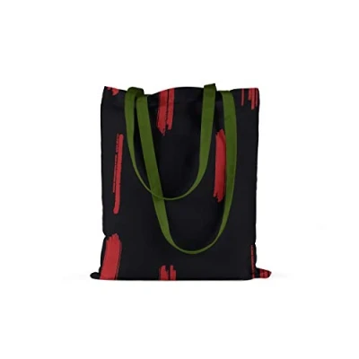 Bonamaison Printed Tote Bag, Reusable Grocery Shopping Machine Washable, Foldable, Canvas Cloth Bag with Green Handles, Size: 34x40 Cm