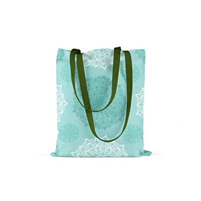 Bonamaison Printed Tote Bag, Reusable Grocery Shopping Machine Washable, Foldable, Canvas Cloth Bag with Green Handles, Size: 34x40 Cm