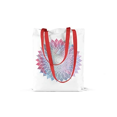 Bonamaison Printed Tote Bag, Reusable Grocery Shopping Machine Washable, Foldable, Canvas Cloth Bag with Red Handles, Size: 34x40 Cm