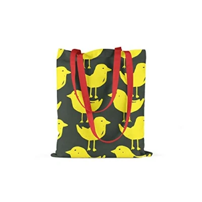Bonamaison Printed Tote Bag, Reusable Grocery Shopping Machine Washable, Foldable, Canvas Cloth Bag with Red Handles, Size: 34x40 Cm
