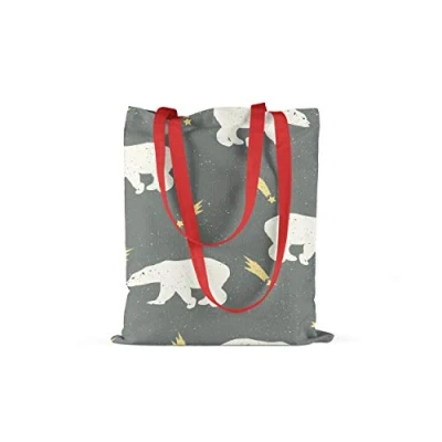 Bonamaison Printed Tote Bag, Reusable Grocery Shopping Machine Washable, Foldable, Canvas Cloth Bag with Red Handles, Size: 34x40 Cm