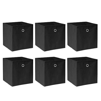 BonChoice Foldable Storage Cubes Boxes Pack of 6 for Home Organization, Eyelet Non Woven Fabric Wardrobe Cabinet Chest Bin Organizer Basket Clothes Bedding Toys Towels, Collapsible & Durable Black