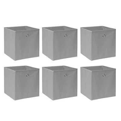 BonChoice Foldable Storage Cubes Boxes Pack of 6 for Home Organization, Eyelet Non Woven Fabric Wardrobe Cabinet Chest Bin Organizer Basket Clothes Bedding Toys Towels, Collapsible & Durable Grey