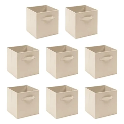 BonChoice Foldable Storage Cubes Boxes Pack of 8 with Handle for Home Organization, Fabric Wardrobe Box Organizer Basket Bins Clothes Beddings Toys Towels, Collapsible & Durable (Beige, 8)