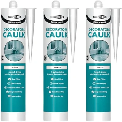 Bond It Caulk Mate One Hour White Acrylic Decorators 3 Pack (285ml Each) Quick Dry Flexible Paintable for Interior Cracks, Skirting Boards & Plasterboard Filling