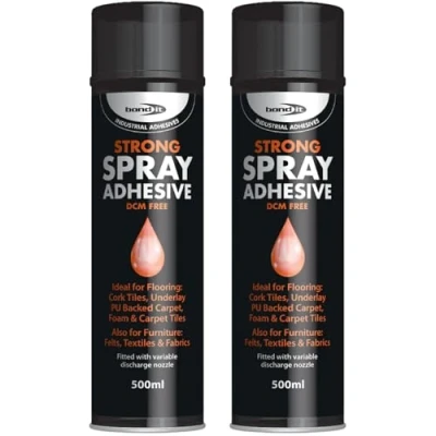 Bond It spray adhesive 2 Pack (500ml Each) Heavy Duty Multi Purpose Aerosol Glue for Carpet Tiles, Flooring, Foam, Vinyl, and Fabric High Strength Contact