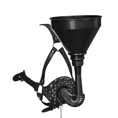 The item will keep the subject's mouth open to allow the funnel to be inserted and can be closed using the plug. The strap measures 66cm with an adjustable lockable buckle to fit head circumference 48cm - 64cm. The strap is 2.5cm wide. The plug hole is 3.5cm in diameter (internal measurement) This funnel plug gag head harness is ideal for any kinky collection. Made from high quality PVC it is ideal for beginners and experienced kinksters alike The funnel can be removed leaving a head harness with plug gag Add this versatile piece of kit to your collection today, they won't last long at this crazy price!