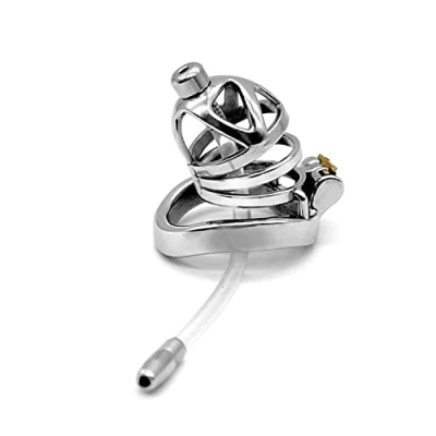Bondage Masters Male Chastity Device Surgical Grade Stainless Steel, Removable Urethral Tube, 50mm Ring