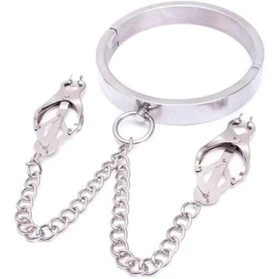 Bondage Masters Neck Collar with Nipple Clamps