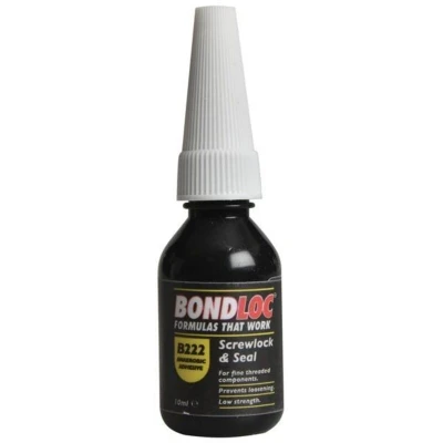 General description Bondloc B222 Screwlock is a low-strength thixotropic anaerobic threadlocker designed for easy disassembly of treated components. It cures only when confined between metal parts, providing secure fastening while allowing for future removal. This product is ideal for small fasteners, including set screws, nuts, bolts, and screws made of various materials such as brass. Technical specifications Resin: Dimethacrylate Color: Purple with a white tint Cure speed with activator: 100°C Shelf life: 12 months at 20°C Specific gravity: 1.06 Full cure time: 12 hours at 20°C Typical strength (ISO 10964): 6Nm Breakaway strength: 4Nm up to 12Nm Prevailing strength: 2Nm up to 6Nm DIN 54454 breakloose: 10Nm max 20Nm DIN 54454 prevailing: 6Nm up to 20Nm Compatibility and accessories Compatible with metal fasteners