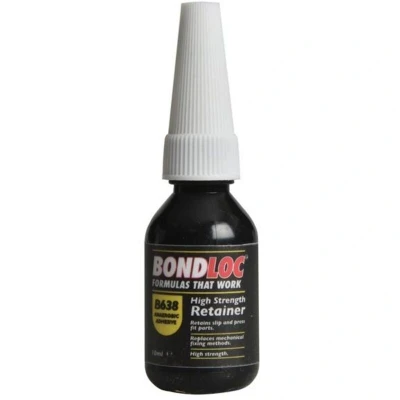 General description Bondloc B638 High Strength Retaining Compound is engineered to provide strong and durable retention for cylindrical parts under dynamic and cyclic loads. It maintains its full strength without fatigue, making it suitable for structural components such as keys, splines, and close-tolerance tubing. This product ensures reliable bonding in demanding applications, offering high performance and long-lasting results. Technical specifications Resin: Urethane Acrylate Color: Green Fixture Speed (no activator): 5 minutes Fixture Speed (with activator): 85°C Shelf Life: Minimum 12 months Specific Gravity: 1.08 Max Operating Temperature: -55°C to +150°C Full Cure Time: 24 hours Static shear strength: 30 N/mm² Compatibility and accessories Suitable for cylindrical parts, keys, splines, and structural tubing with close tolerance fit. Installation Apply the product to the surfaces to be bonded. Allow 5 minutes for