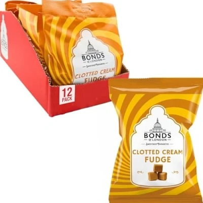 Bonds of London Clotted Cream Fudge Bags, Retro Vanilla Gift Sweets, Vegetarian Friendly, 130 g (Pack 12)