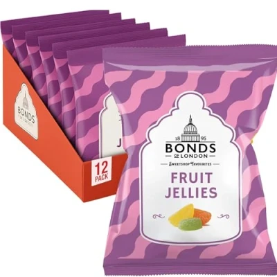 RETRO SWEETS: Indulge in classic sugar coated fruit jellies, a traditional sweetshop favourite with no artificial colours or flavours VEGETARIAN FRIENDLY: A vegetarian friendly assortment of chewy sweets, perfect for satisfying your sweet tooth cravings GENEROUS PACK SIZE: Each order includes 12 bags of 130 g - plenty to stock up your sweet stash or spread the joy around VARIETY: An assortment of delicious fruit flavours to enjoy the taste from yesteryear, sugar-coated and bursting with nostalgic goodness BRITISH CONFECTIONERY HERITAGE: Crafted by Bonds of London, a trusted name in UK sweets since 1895—quality and tradition in every bag!